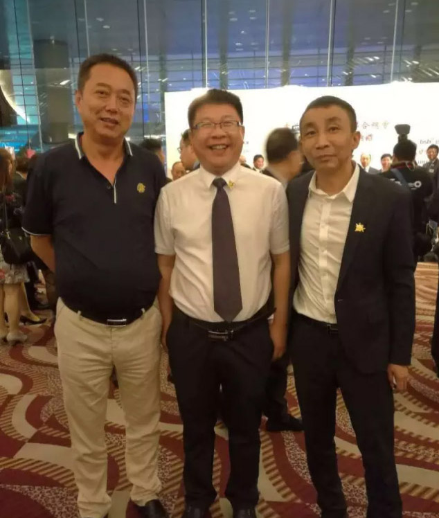 (挨著(zhù)我商會(huì )會(huì )長(cháng)王學(xué)淵而站的兩位紅衣男士左為包商銀行董事長(cháng)李振西、右為東道主陳振文會(huì )長(cháng))